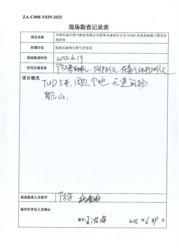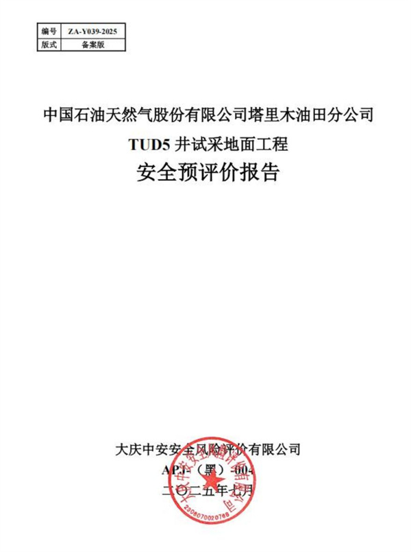 中國石油天然氣股份有限公司塔里木油田分公司 TUD5 井試采地面工程安全預評價報告