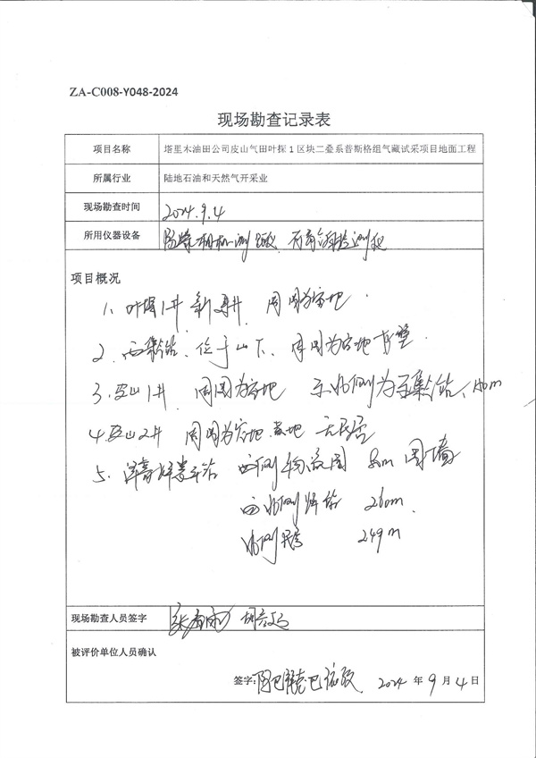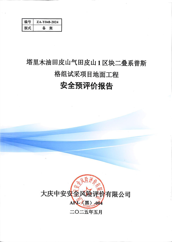 塔里木油田皮山氣田皮山1區(qū)塊二疊系普斯格組試采項目地面工程安全預(yù)評價報告