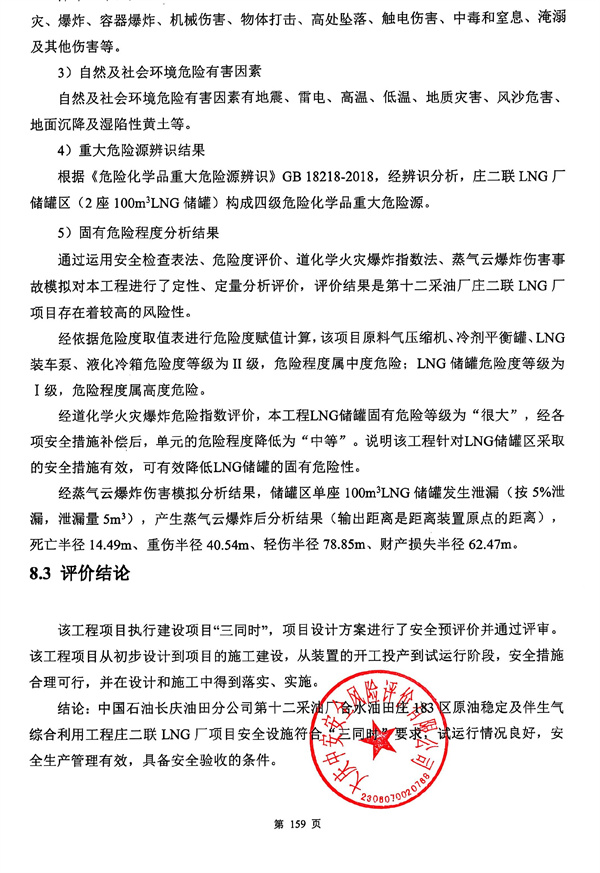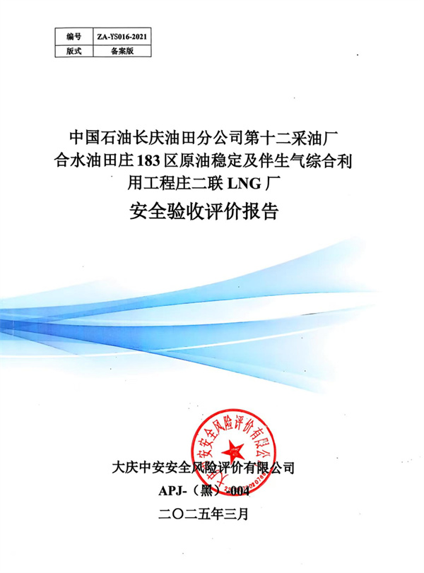 中國石油長慶油田分公司第十二采油廠合水油田莊183區原油穩定及伴生氣綜合利用工程莊二聯LNG廠安全驗收評價報告 |