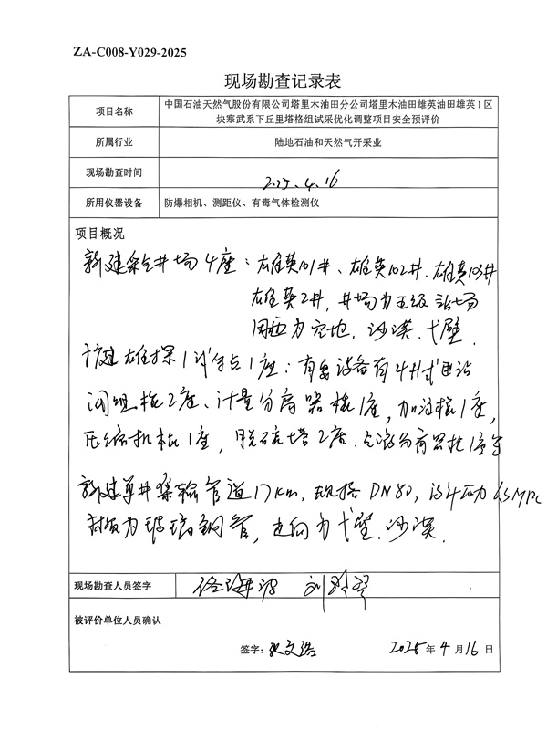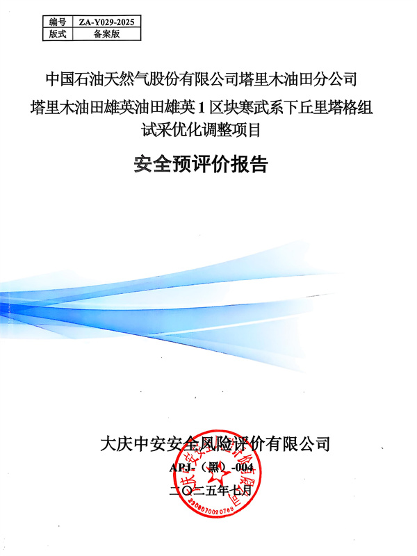 中國石油天然氣股份有限公司塔里木油田分公司塔里木油田雄英油田雄英1區塊寒武系下丘里塔格組試采優化調整項目安全預評價報告
