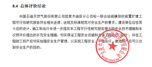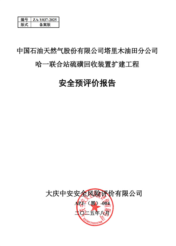 中國石油天然氣股份有限公司塔里木油田分公司哈一聯(lián)合站硫磺回收裝置擴(kuò)建工程安全預(yù)評價(jià) |