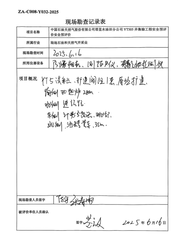中國石油天然氣股份有限公司塔里木油田分公司YT505井集輸工程安全預評價報告