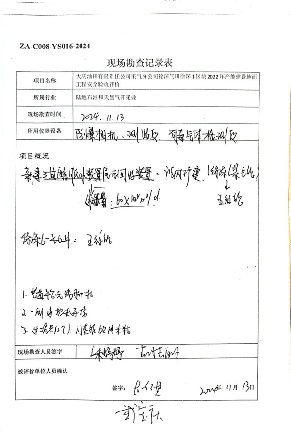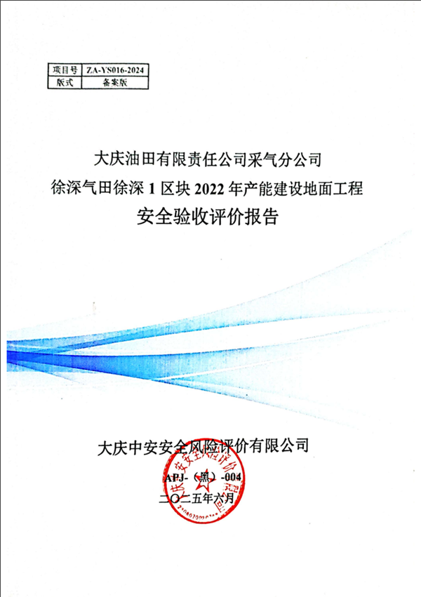 大慶油田有限責任公司采氣分公司徐深氣田徐深1區塊2022年產能建設地面工程安全驗收評價報告 |