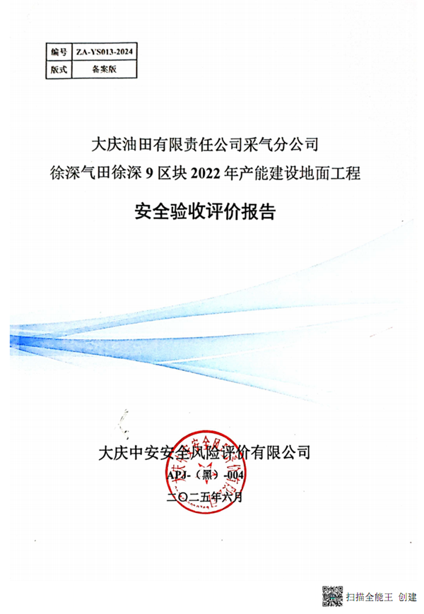 大慶油田有限責(zé)任公司采氣分公司徐深氣田徐深9區(qū)塊2022年產(chǎn)能建設(shè)地面工程安全驗(yàn)收評(píng)價(jià)報(bào)告 |
