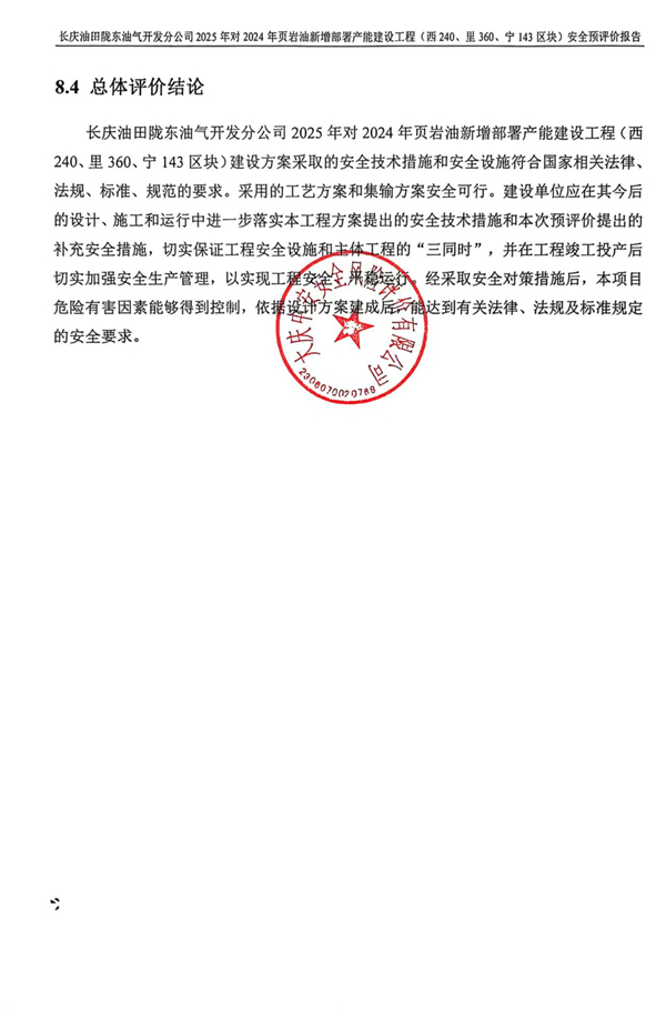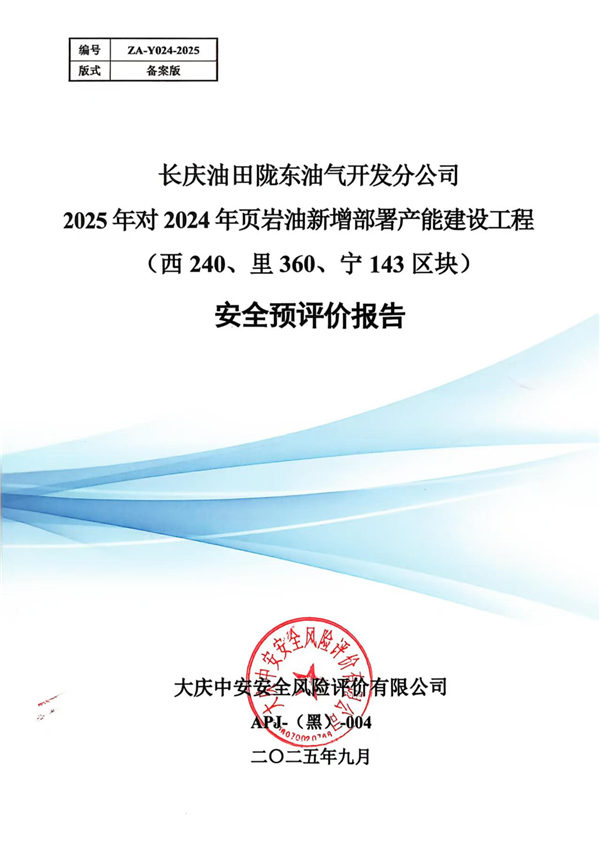 長(zhǎng)慶油田隴東油氣開(kāi)發(fā)分公司2025年對(duì)2024年頁(yè)巖油新增部署產(chǎn)能建設(shè)工程(西240、里360、寧143區(qū)塊)安全預(yù)評(píng)價(jià)報(bào)告
