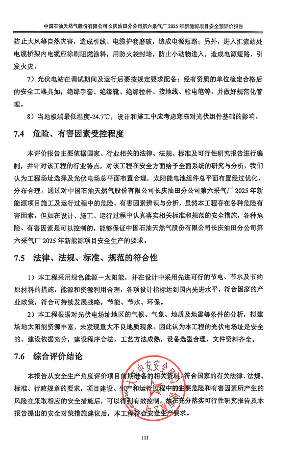 中國石油天然氣股份有限公司長慶油田分公司第六采氣廠2025年新能源項(xiàng)目安全預(yù)評(píng)價(jià)報(bào)告 |