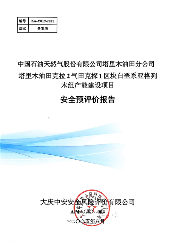 中國石油天然氣股份有限公司塔里木油田分公司塔里木油田克拉2氣田克探1區塊白堊系亞格列木組產能建設項目安全預評價