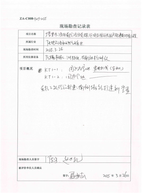 對新建井場及擴建站場周邊環境進行檢查。 |